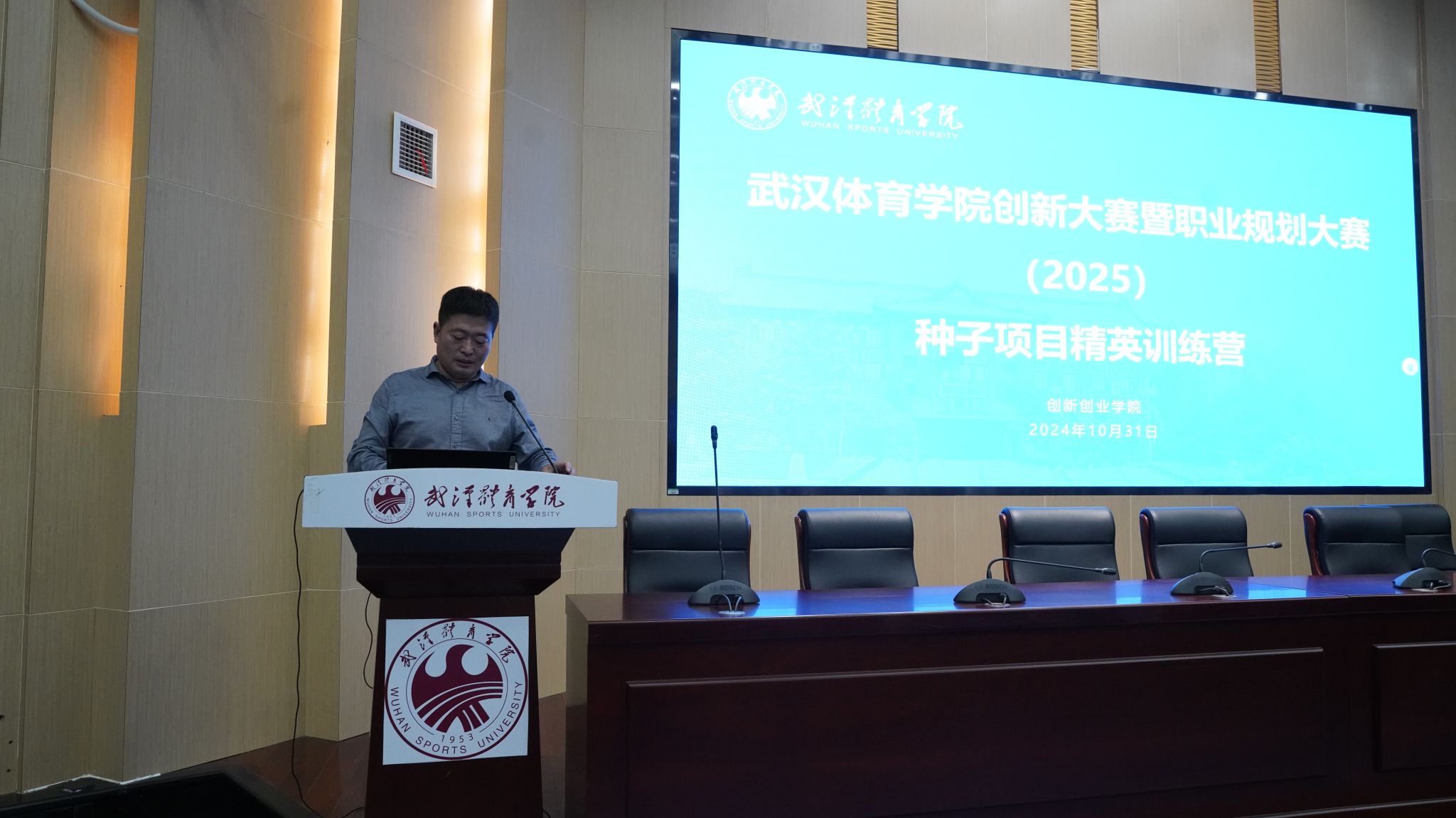 2024年10月31日晚,武汉体育学院创新大赛暨职业规划大赛(2025)种子项目精英训练营开营仪式在武汉体育学院东教学楼第三报告厅举行。