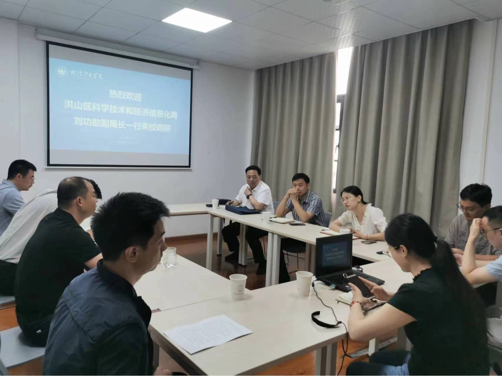 武汉市洪山区科学技术和经济信息化局刘功勋副局长一行来校走访调研